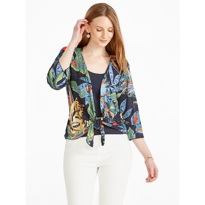 Foxcroft floral pattern reversible open front cardigan.